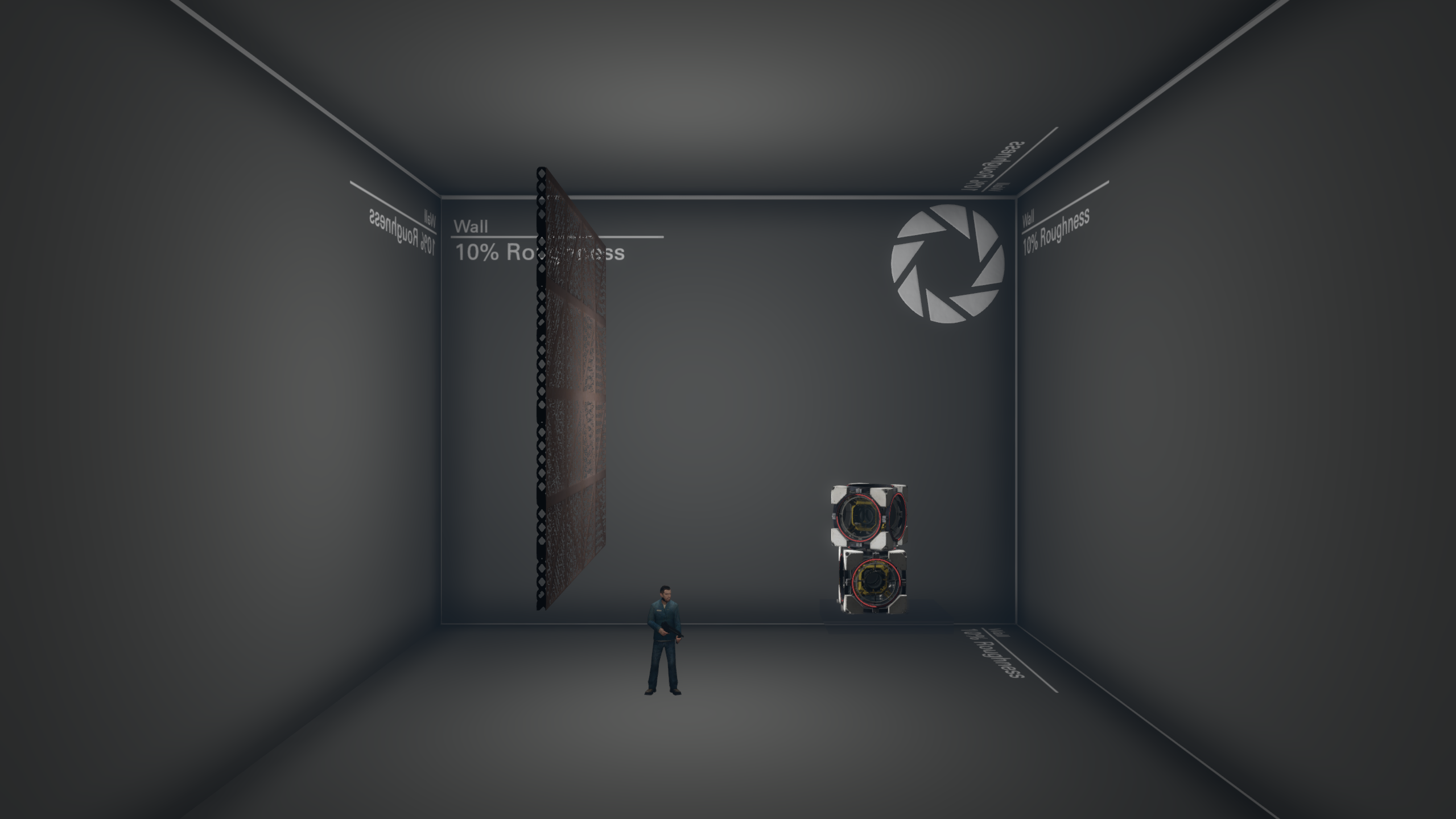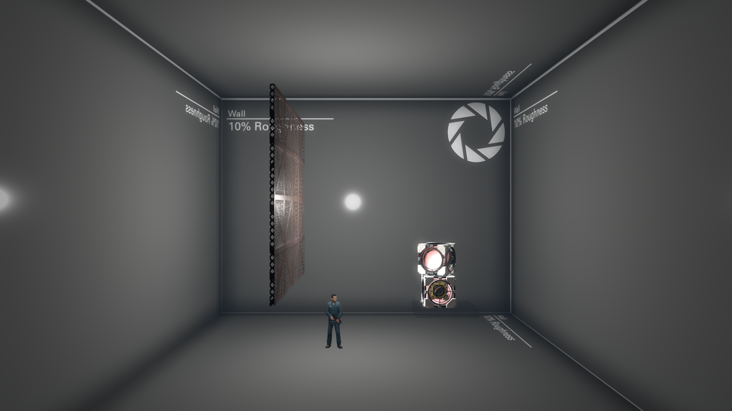 Middle: Specular lighting enabled. Notice a white circle appearing on the wall, as well as reflection on the grate.